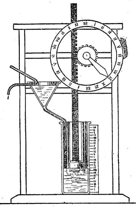 Noce oraz kaprysy przyrody zmusiły człowieka do poszukiwania nowych mierników upływającego czasu, które byłyby niezależne od pogody i pory doby. Człowiek zaczął wykorzystywać do mierzenia czasu wodę, piasek oraz ogień. Jak podają kroniki chińskie zegar wodny był pomysłem cesarza Huang-Ti. Najstarsze zegary wodne były w użyciu już około 1400 lat przed Chrystusem. Ich działanie opierało się na wypływie wody z naczynia, które zaopatrzone było w podziałkę godzinową. Najstarszy zegar tego typu znaleziono w 1904 r. w ruinach Karnaku w Dolnym Egipcie. Pochodził on z czasów Faraona Amenhotepa III, wykonany był z alabastru w kształcie donicy, zewnętrzne ściany zdobiły liczne rysunki i napisy. Wewnątrz naczynia natomiast znajdowała się podziałka.
